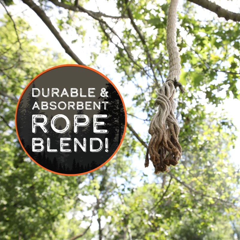 - 3/4" inch rope holds more scent, lasts longer in the elements, and sways less in front of your trail camera compared to thinner diameter ropes.