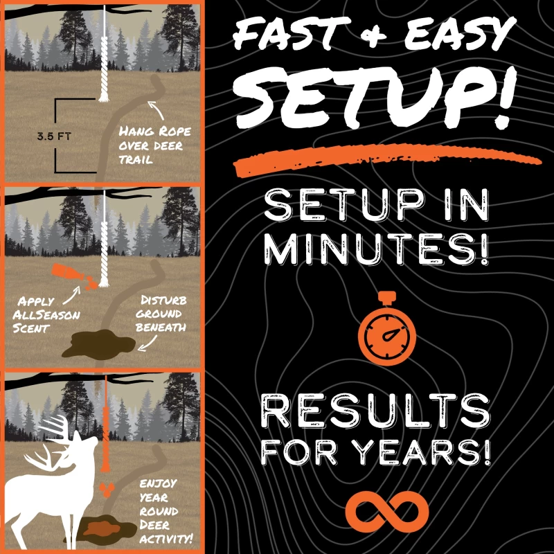 Was skeptical of trying this from of all the mixed reviews online of the effectivness of scent ropes in general. It did take some time with lots of deer unsure about it in the beginning. However I recieved a picture of one doe with her nose touching it, it was game on after that. Deer would hit it daylight and dark. Got the first picture of what would be my target buck using it and was able to harvest him in November. Recommend to anyone to give it a try.
