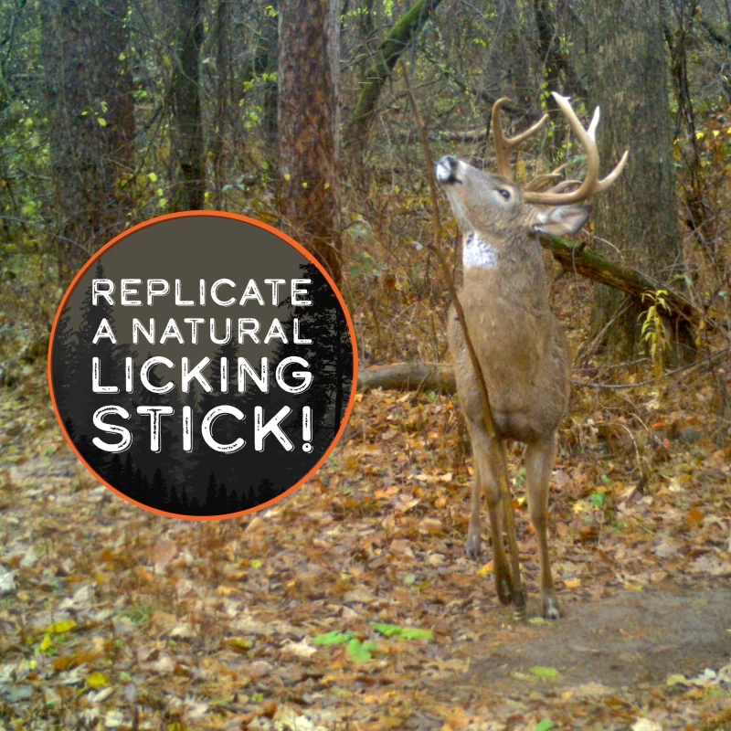 • Natural Licking Sticks are used for scent communication year-round by deer. The HODAG Licking Stick System gives you everything you need to create a Licking Stick where you choose whether that be in front of your trail camera or deer hunting stand. Creating a deer scent communication hub similar to a mock scrape that will be used year-round by taking advantage of a whitetail deer's natural behavior and curiosity.