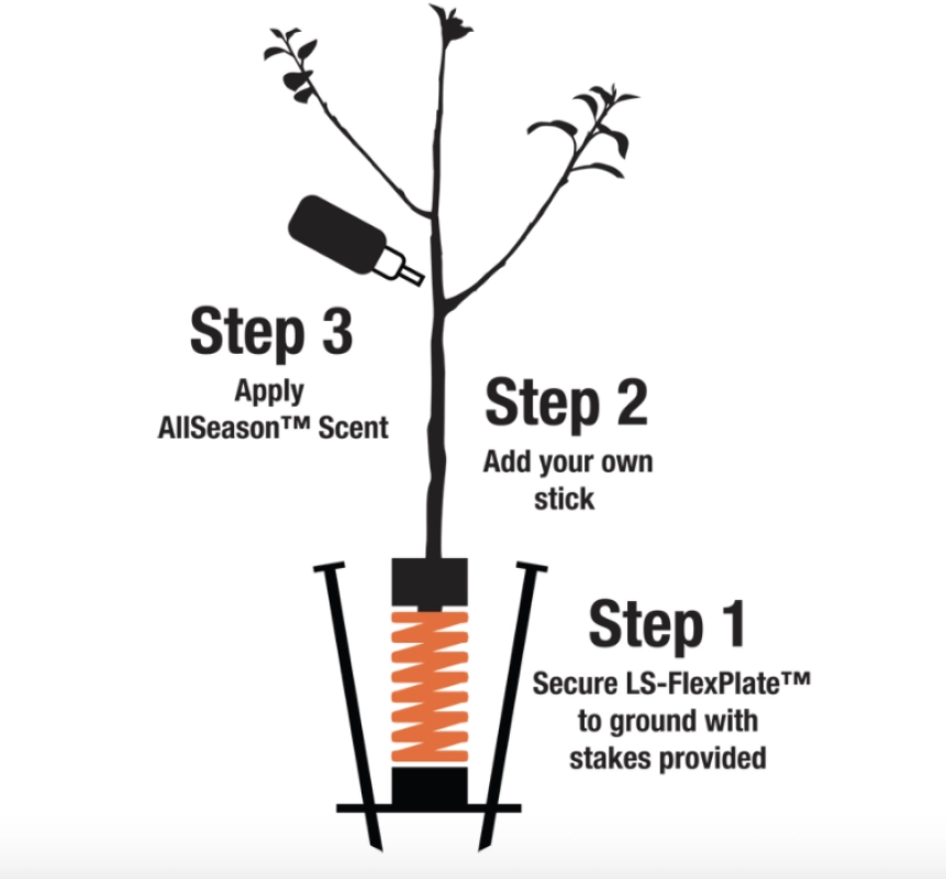 Includes: Licking Stick FlexPlate™, (2) 12" anchoring stakes, and 8 oz. bottle of AllSeason Scent™ w/ applicator cap